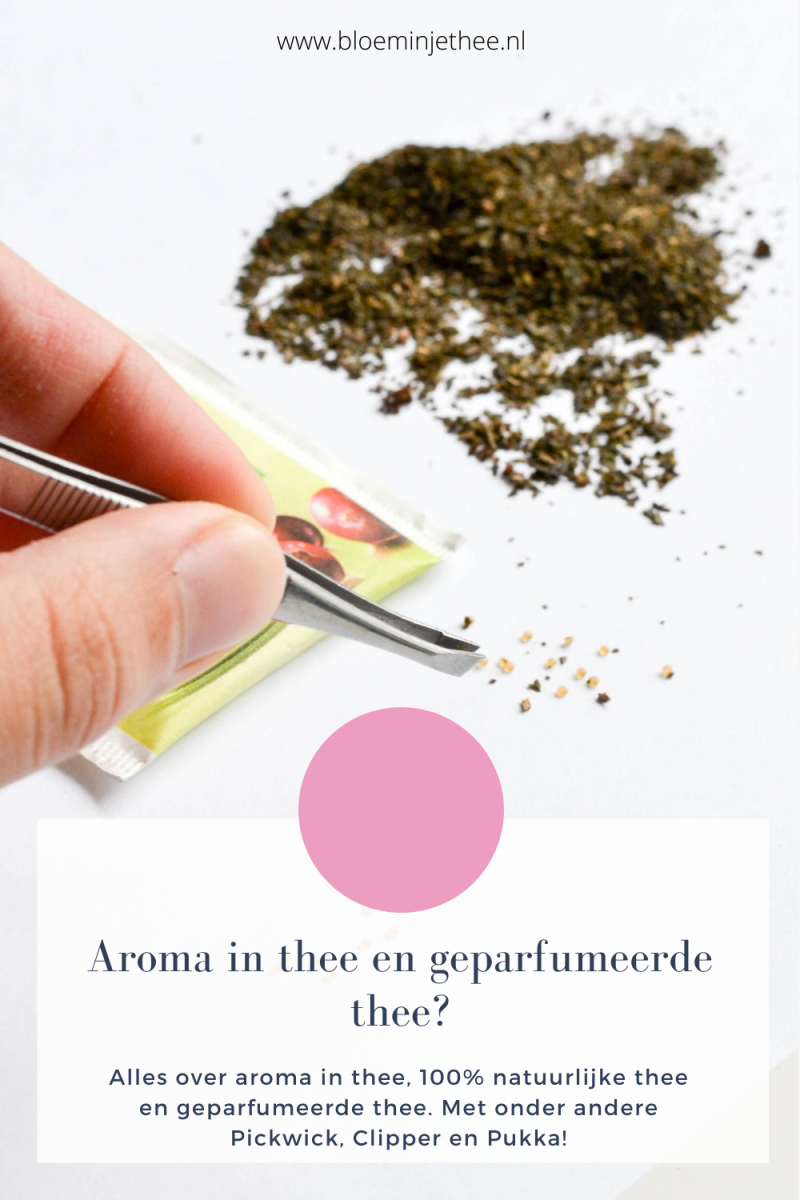 Veel theesoorten zijn geparfumeerde theeën. Als je een mix van verschillende soorten smaken koopt, is het regelmatig nodig om met een aroma een stabiele smaak te creëren die je ook duidelijk ruikt en proeft. Dan wordt er aroma toegevoegd.