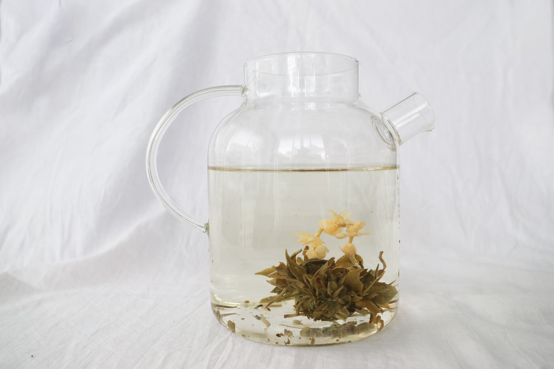 Zetadvies: Giet water van 90 graden in een glas of theepot. Laat de theebloem voorzichtig los in het water. Geniet hoe de theebloem open vouwt! Je kan twee liter thee zetten met één theebloem.