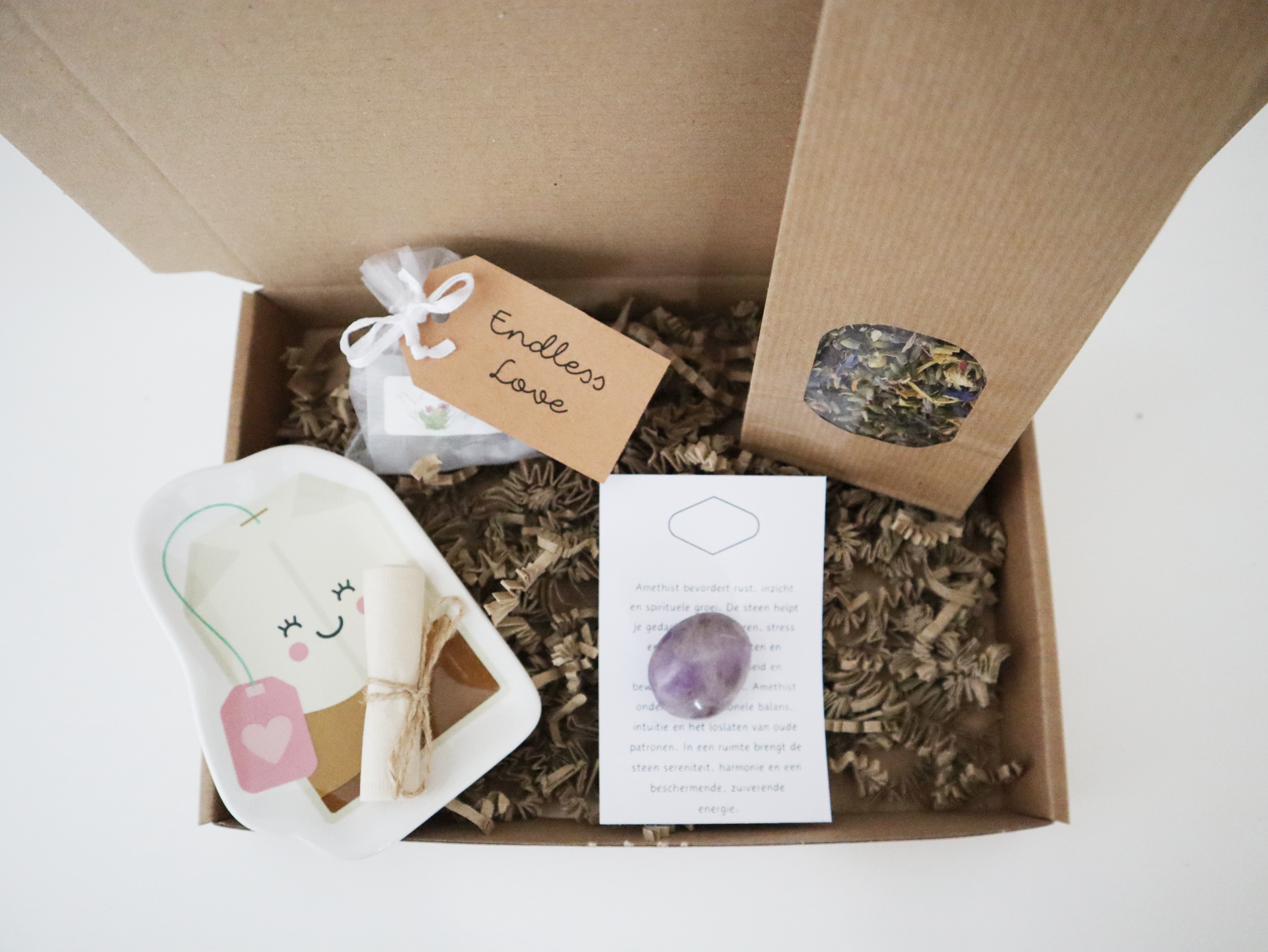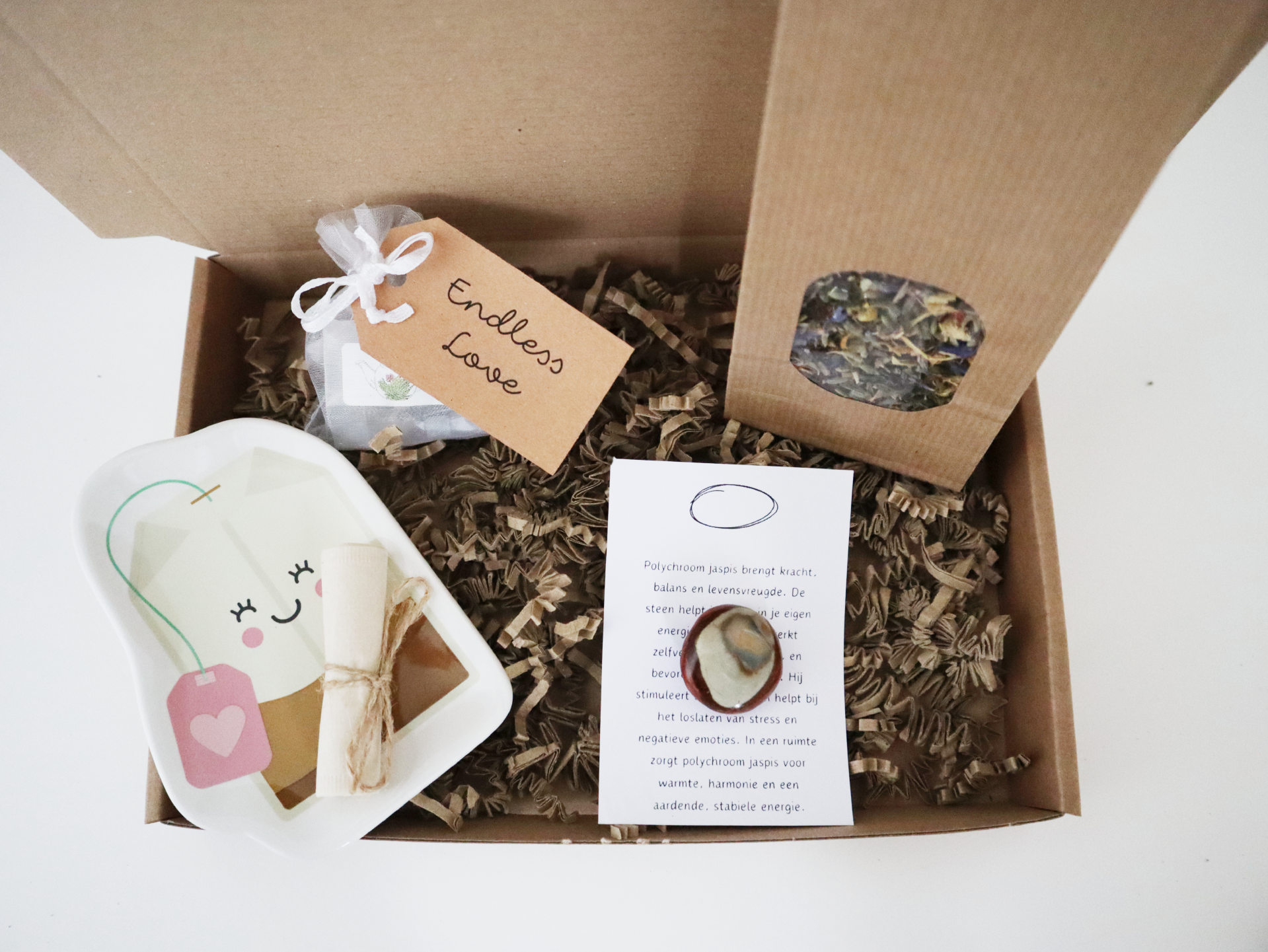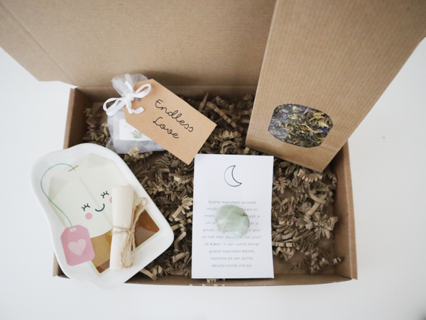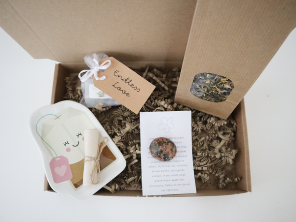 Geef een moment van rust cadeau met dit luxe pakket met heerlijke thee en een prachtige edelsteen. De zorgvuldig geselecteerde thee zorgt voor ontspanning en genot, terwijl de edelsteen een vleugje positieve energie toevoegt aan elk moment. Een stijlvol en betekenisvol geschenk voor jezelf of iemand die je graag verwent. Perfect voor iedere gelegenheid.