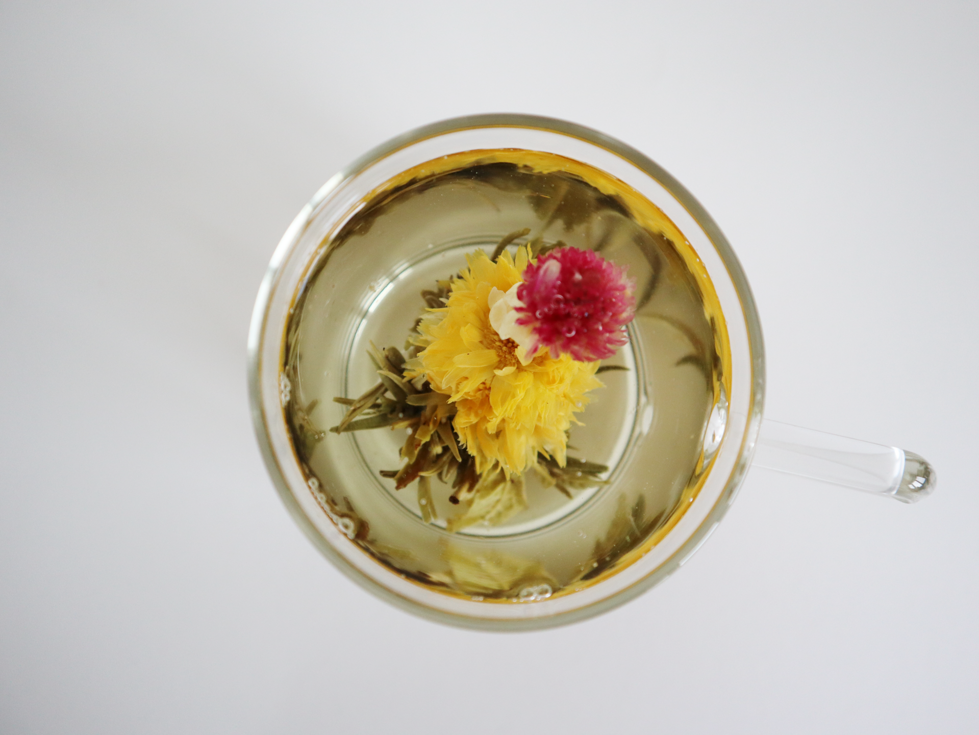 Zetadvies: Giet water van 90 graden in een glas of theepot. Laat de theebloem voorzichtig los in het water. Geniet hoe de theebloem open vouwt!