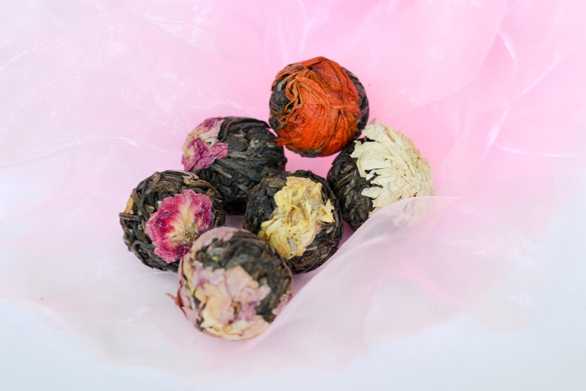 Pu-Ehr theeballen met bloemen (6 stuks)