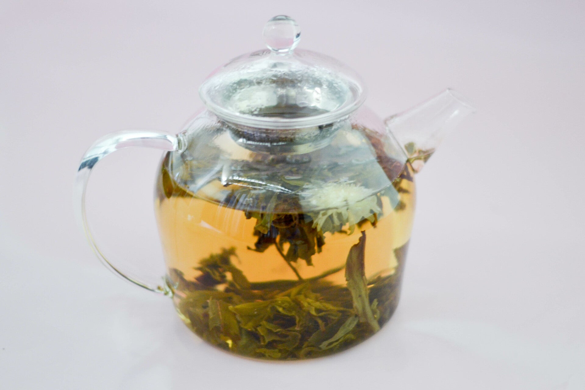 Ingrediënten | Pu-Ehr en per bol een: jasmijnbloem, hibiscus, pioen, chrysant of rozenblad |