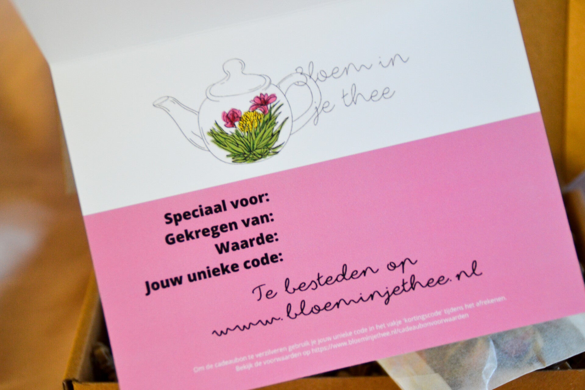 Kan je niet kiezen wat je cadeau gaat geven, of wil je een originele cadeaubon? Bestel dan deze cadeaubon van Bloem in je thee en laat de ontvanger zelf het cadeau kiezen!
