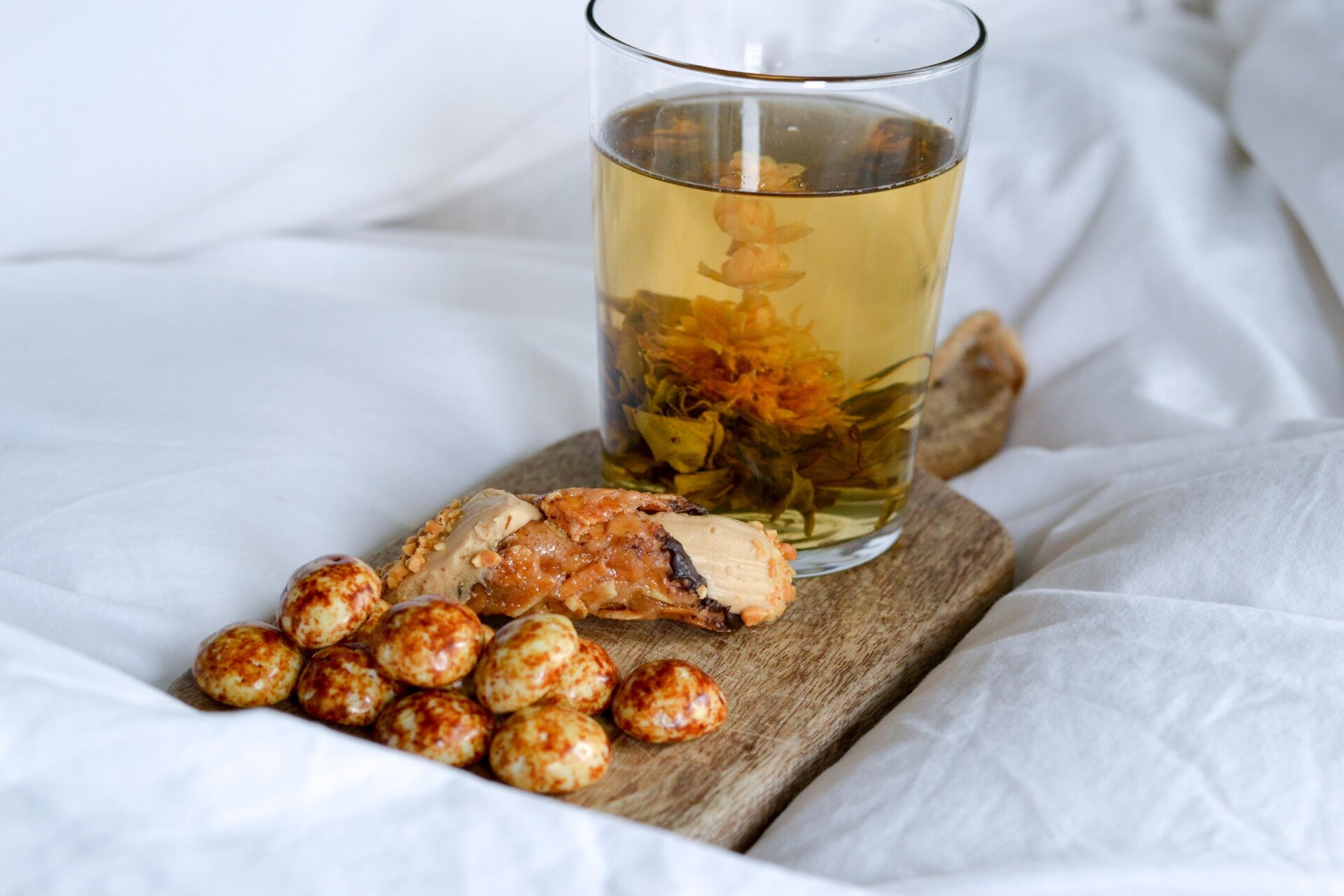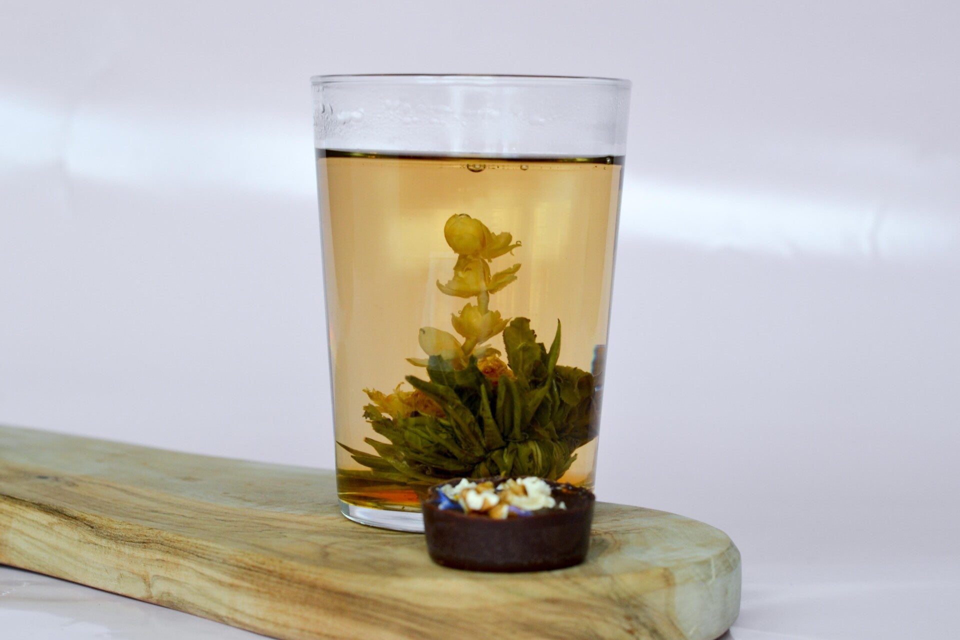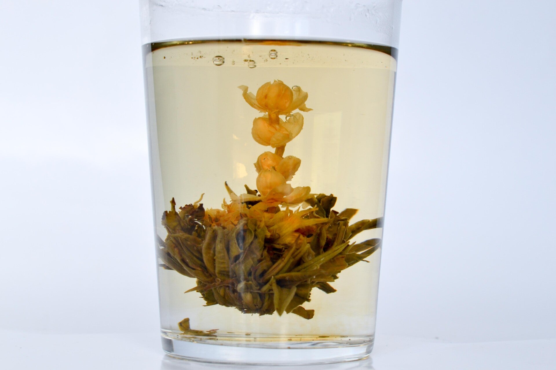 Zetadvies: Giet water van 90 graden in een glas of theepot. Laat de theebloem voorzichtig los in het water. Geniet hoe de theebloem open vouwt!